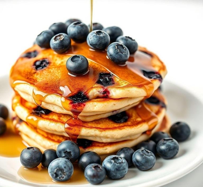 - Serve: Stack the pancakes on a plate, drizzle with maple syrup (if desired) and add extra fresh blueberries on top. You can also serve them with a dollop of yogurt or whipped cream for an indulgent touch.